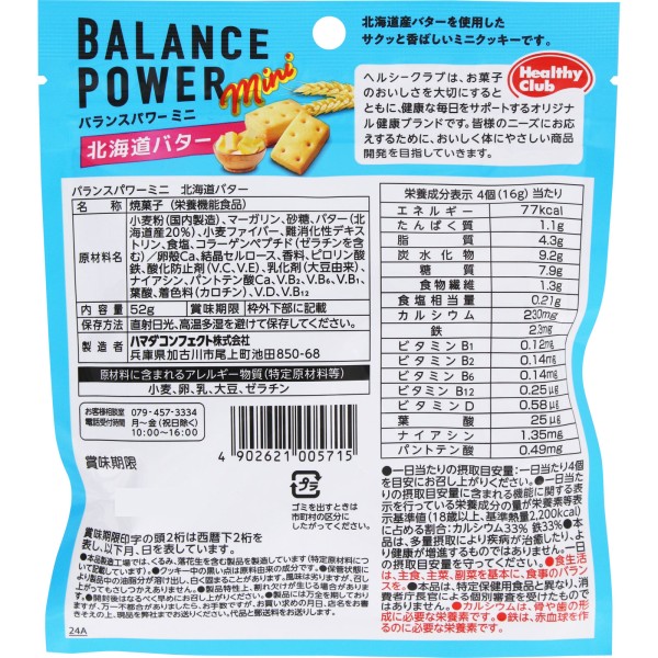 밸런스 파워 미니 홋카이도 버터 52g 하마다 콘펙트 > 기타