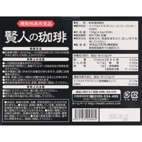 현인의 커피 4.5g×30개 오리히로 플란듀 > 생활 습관 예방