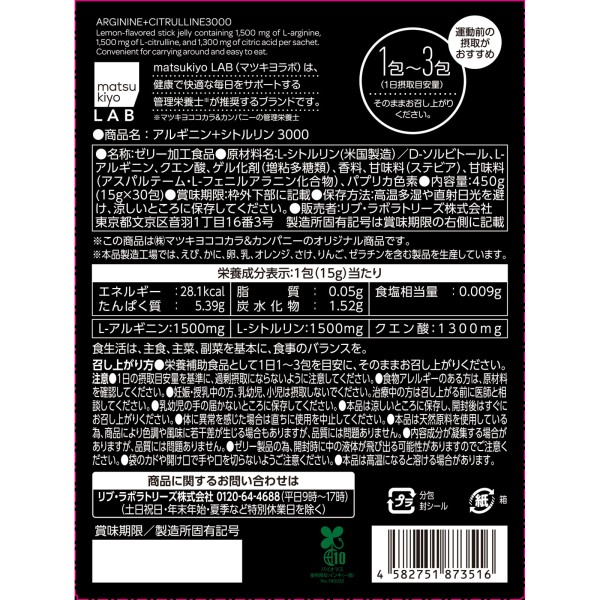 마츠키요 LAB 아르기닌+시트룰린 3000 젤리 30포 > 젤리