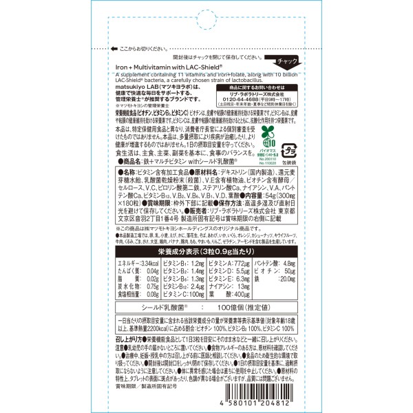 마츠키요 LAB 철+멀티비타민 with 쉴드 유산균 180알 > 종합 비타민제