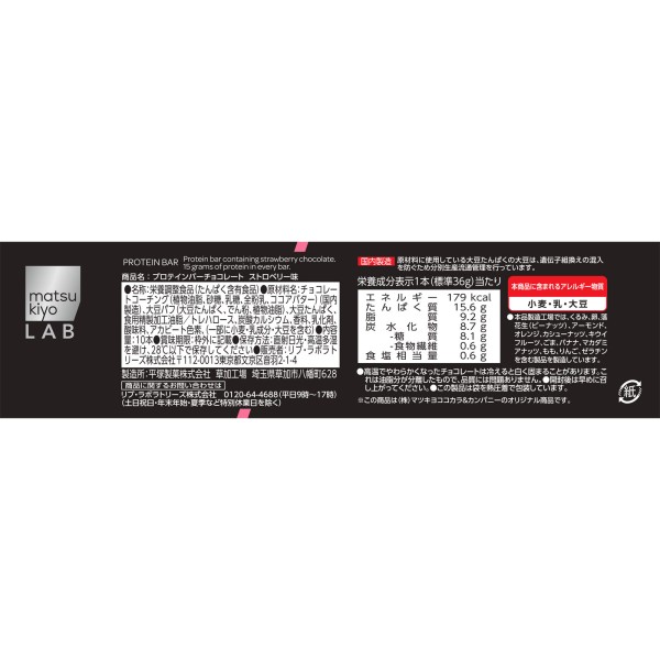 마츠키요 LAB 프로테인바 딸기볼 박스 36g×10개 > PB
