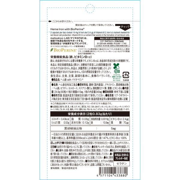 마츠키요 LAB 헴철 with 바이오페린 60알 > 철제