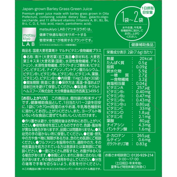 마츠키요 LAB 국산 보리 어린잎 청즙 멀티비타민 식이섬유 30봉 > 보리