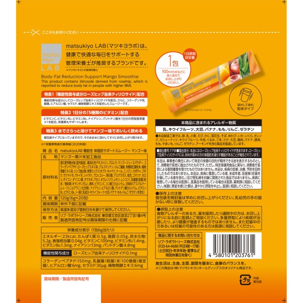 마츠키요 LAB 기능성 체지방 서포트 스무디 망고맛 20포 > 다이어트