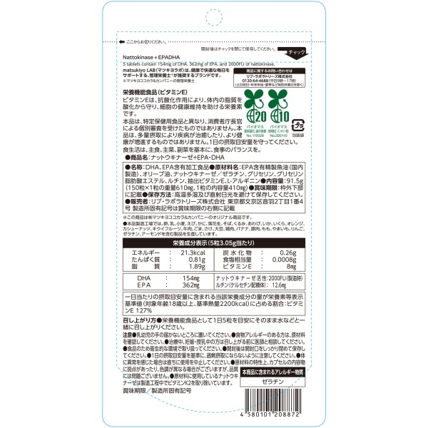 마츠키요 LAB 낫토키나제+EPA·DHA 150알 > 낫토
