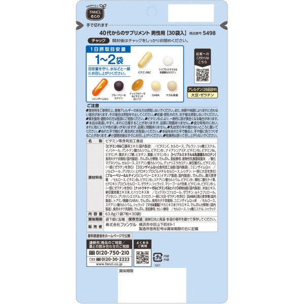 40대부터의 보충제 남성 30일분 30봉 판클 > 기타