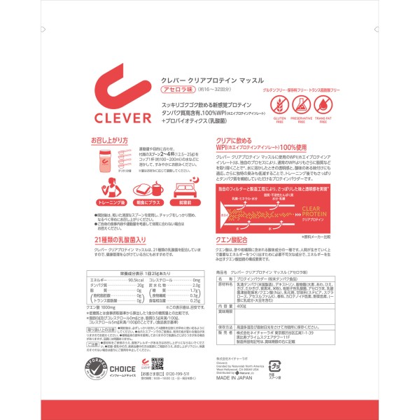 클레버 클리어 프로테인 머슬 아세로라맛 400g 네이처랩 > 기타
