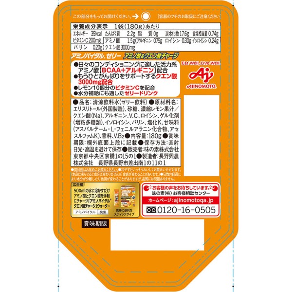 아미노바이탈 젤리 구연산&아미노산 차지 180g 아지노모토