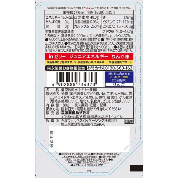 모리나가 in젤리 주니어에너지 사과 180g 모리나가제과 > 위더 in 젤리