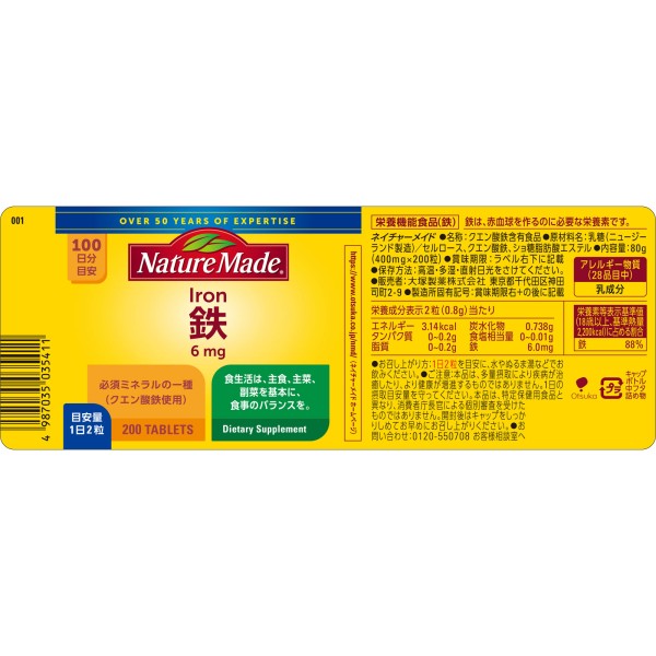 네이처메이드 철(아이언) 200정 오츠카제약 > 철제