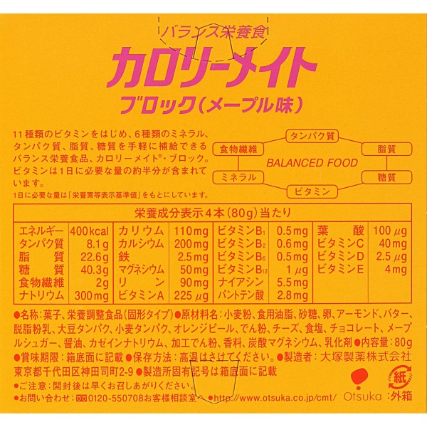 칼로리메이트 블록 메이플맛 80g 오츠카제약 > 칼로리메이트