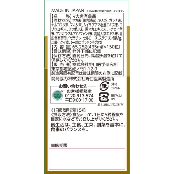 멘즈마카 150정 주식회사 노구치의학연구소 > 마카