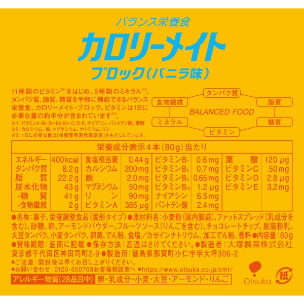 칼로리메이트 블록 바닐라맛 4개 오츠카제약 > 칼로리메이트