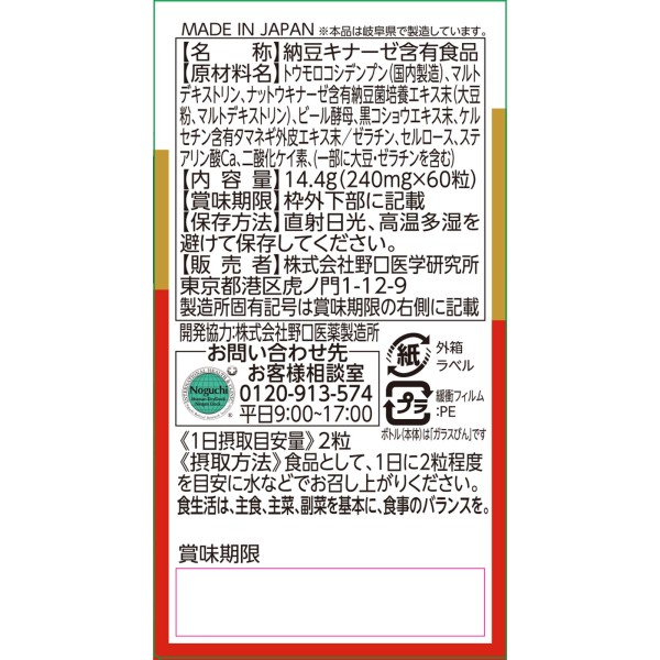 낫토키나제 60정 주식회사 노구치의학연구소 > 낫토
