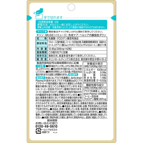 iMUSE 면역케어·헬시아 내장지방다운 7일분 42정 기린홀딩스 > 면역 활성화 작용