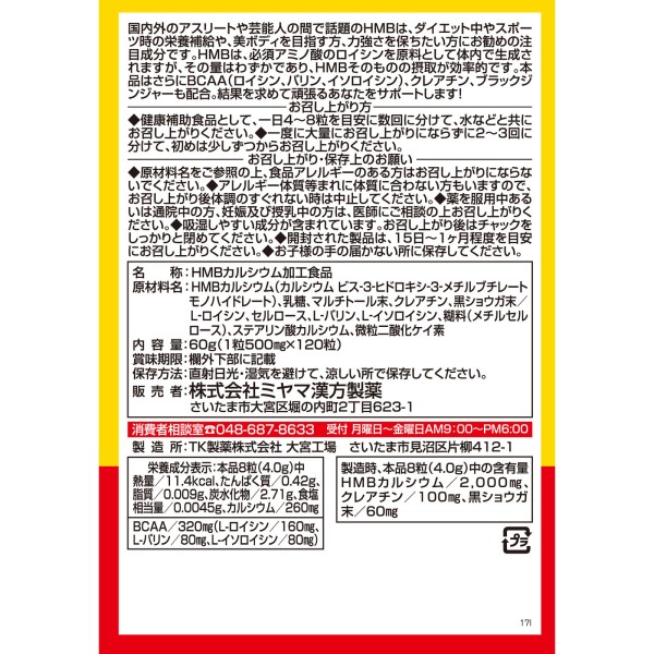 HMB+BCAA 120정 미야마한방제약