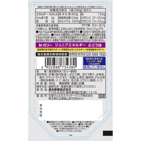모리나가 in젤리 주니어에너지 포도 180g 모리나가제과
