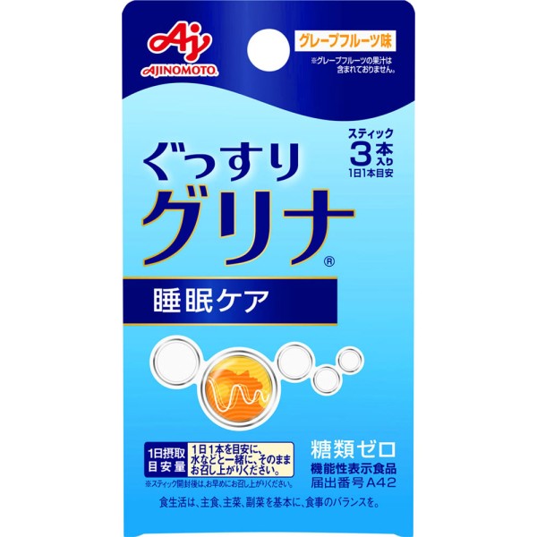 수면 아미노산 "글리신"이 주성분인, 깊은 수면과 상쾌한 기상을 서포트하는 아지노모토 서플리먼트입니다. "글리신"은 신속하게 깊은 수면(서파수면이라고도 불리는)을 가져오고, 수면의 질 향상(숙면감 개선, 수면 리듬 개선)이나, 기상 시의 상쾌한 좋은 기상, 주간 졸음 개선, 피로감 경감, 작업 효율 향상에 도움이 됩니다. (기능성 표시 식품)