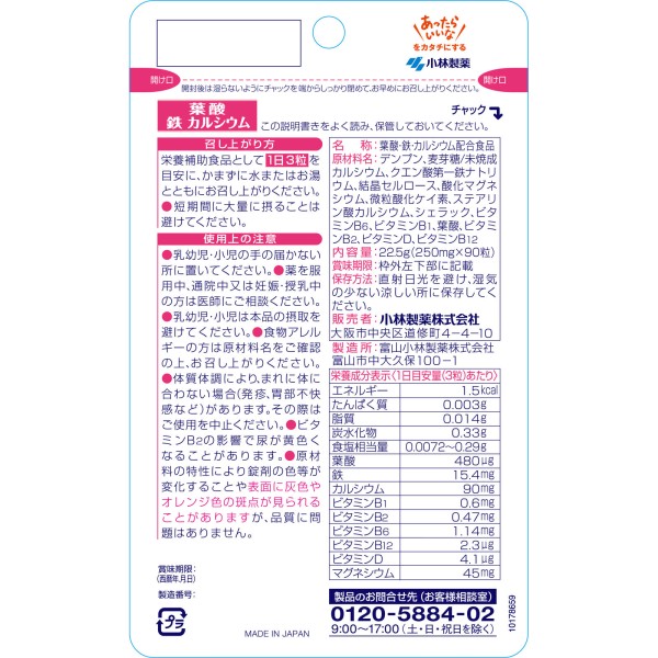 엽산 철 칼슘 90알 고바야시제약 > 기타