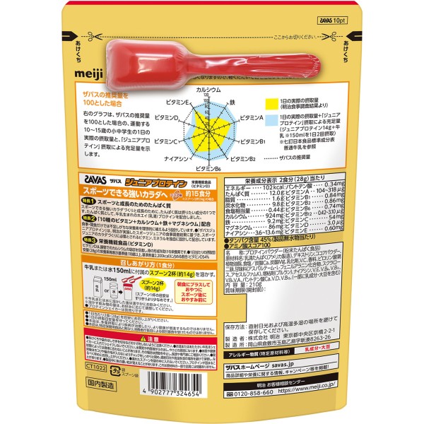 유청 단백질과 스포츠 주니어의 부족하기 쉬운 영양소를 이상적으로 보충하는, 맛있는 코코아맛 프로틴으로, 성장기 몸 만들기를 서포트할 수 있습니다.