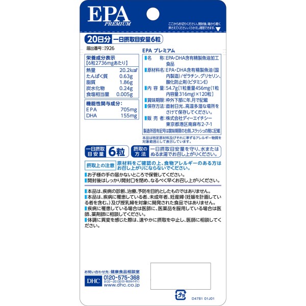 20일 EPA 프리미엄 120알 DHC > 혈류 개선
