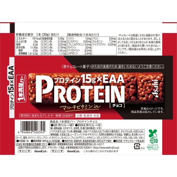 일본만족바 프로틴 초코 39g 아사히그룹식품주식회사 > 1개로 만족