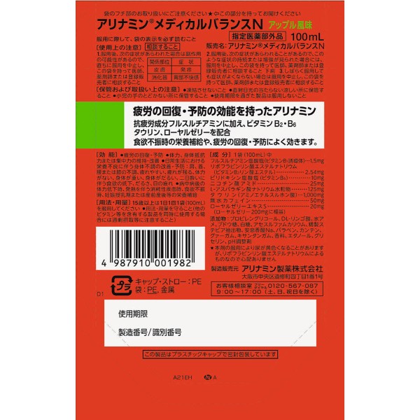 아리나민 메디칼 밸런스 애플풍미 100ml 아리나민제약