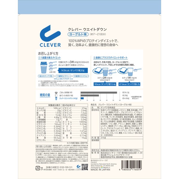 클레버 프로틴 웨이트다운 요구르트 315g 네이처랩 > 드링크·쉐이크