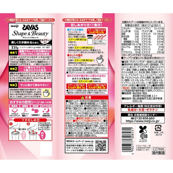 자바스 포 우먼 셰이프 앤 뷰티 밀크티풍미 12식분 231g 메이지(구 메이지제과) > 자바스