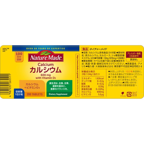 네이처메이드 칼슘 200알 오츠카제약 > 칼슘제
