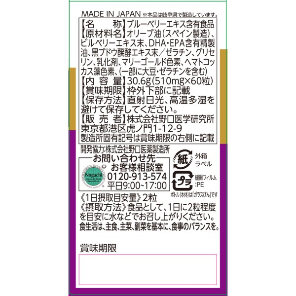 블루베리&루테인 60알 주식회사 노구치의학연구소 > 블루베리