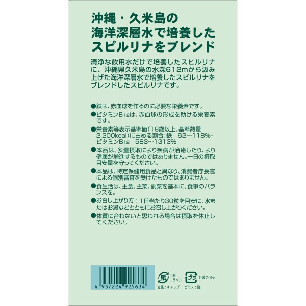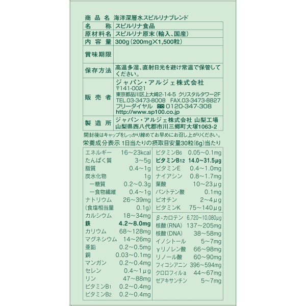 해양심층수 스피루리나 블렌드 스피루리나 100% 1500알 재팬알게 > 스피루리나