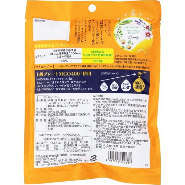 비타민C 마누카허니 목캔디 오렌지진저맛 60g 아사다아메 > 봉투입이