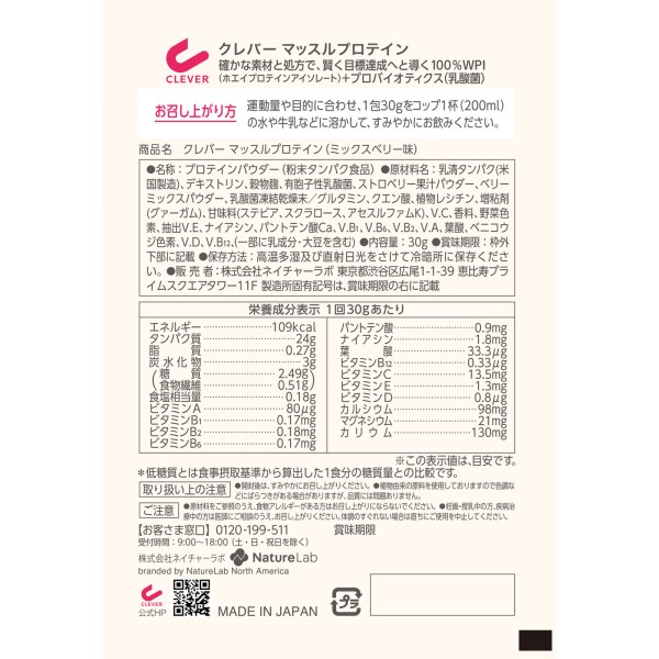 클레버 프로테인머슬 베리 30g 네이처랩 > 기타