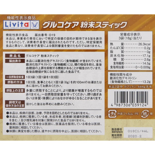 Livita 글루코케어 분말스틱 30봉 다이쇼제약 > 기능성
