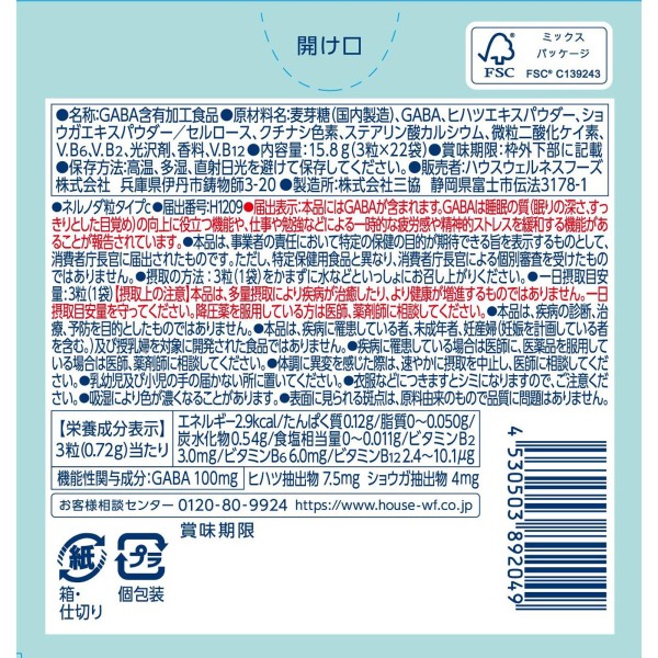 기능성 관여 성분 GABA 100mg이 배합된, 취침 전 물 등과 함께 마시는 알 타입입니다.