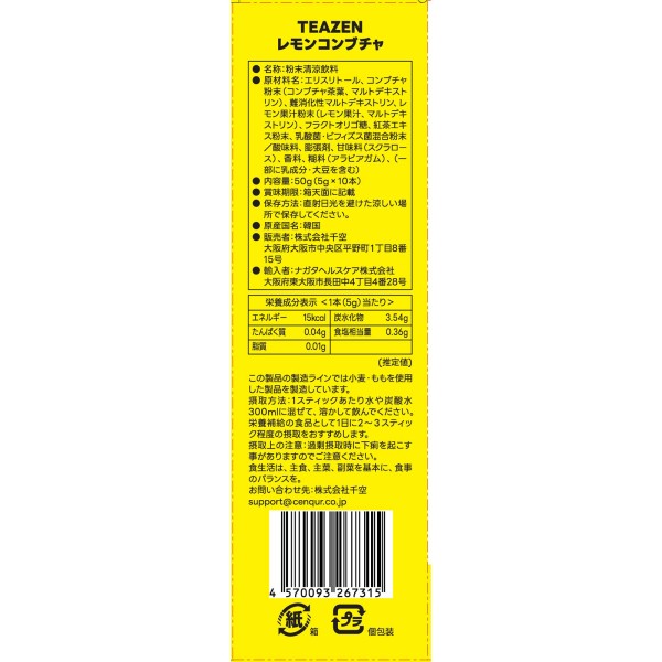 센쿠 TEAZEN 콤부차 레몬 10본 센쿠 > 미피부 효과