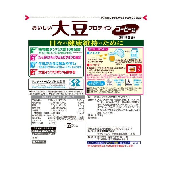 맛있는 대두 프로테인 360g 모리나가제과 > 위더