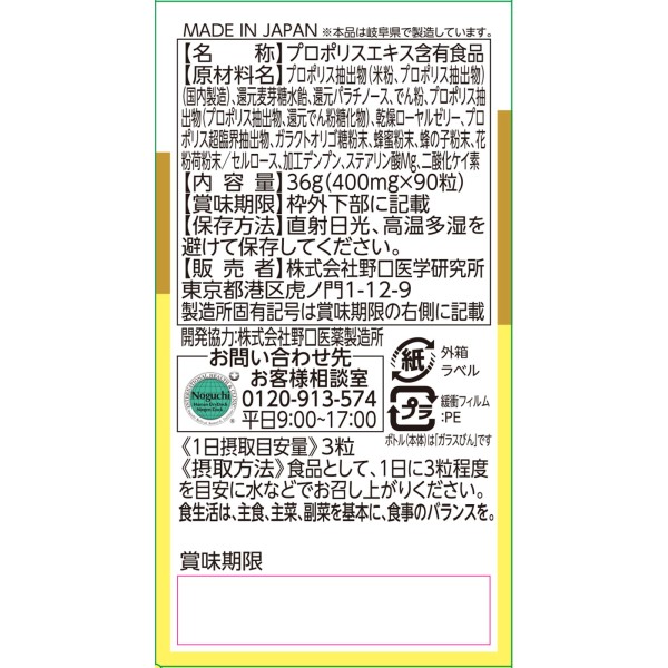 브라질산 3종 프로폴리스 90알 주식회사노구치의학연구소 > 프로폴리스