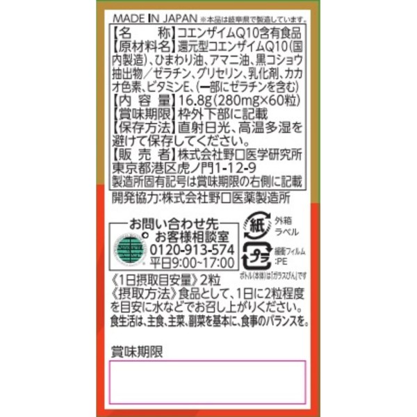 환원형 코엔자임Q10 60알 주식회사노구치의학연구소 > 자양·강장
