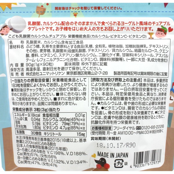 어린이 유산균&칼슘 츄어블 90알 리켄 > 기타