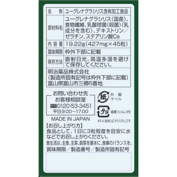 유글레나 녹황의 힘 45T 메이지약품 > 기타