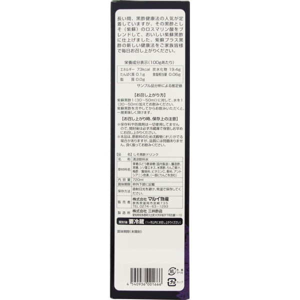 자소 흑초는 쌀 흑초에 차조기 잎 추출액을 더한 "차조기 식초"입니다. 흑초는 아미노산을 비롯한 많은 영양분이 녹아 있습니다.