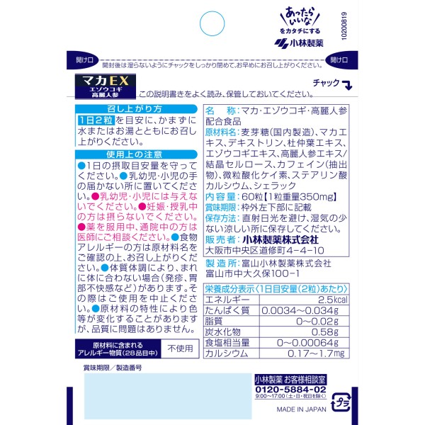 고바야시제약의 영양보조식품 마카EX 60알 고바야시제약 > 마카