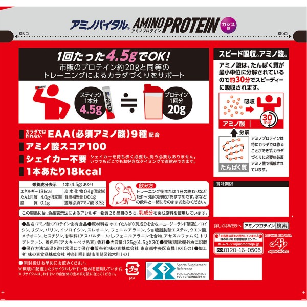 아미노바이탈 아미노프로테인 카시스맛 파우치 4.3g×30p 아지노모토