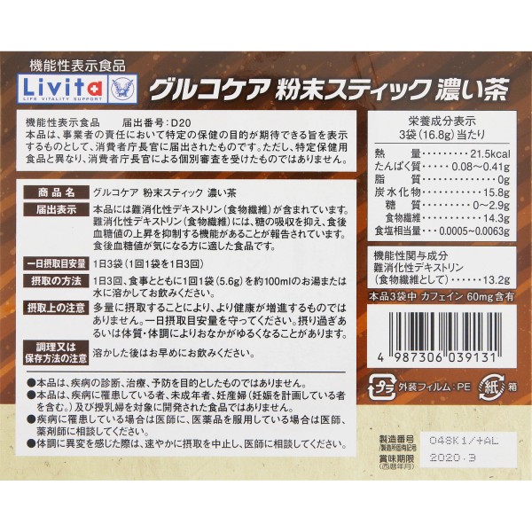 Livita 글루코케어 분말 스틱 진한 차 30봉 다이쇼제약 > 기능성