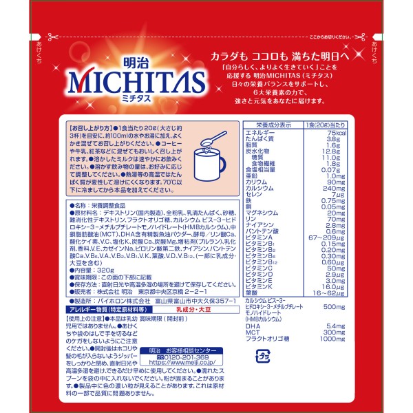 메이지 미치타스 영양 서포트 밀크 320g 메이지(구 메이지제과) > 기타