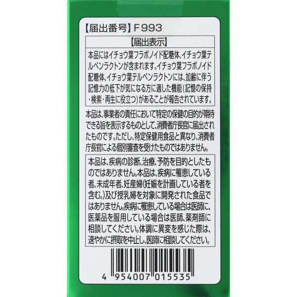 은행잎 플라보노이드 배당체, 은행잎 테르펜 락톤에는 노화에 따른 기억력 저하가 신경 쓰이는 분에게 적합한 기능(기억의 유지·검색·재생에 도움)이 보고되어 있습니다.