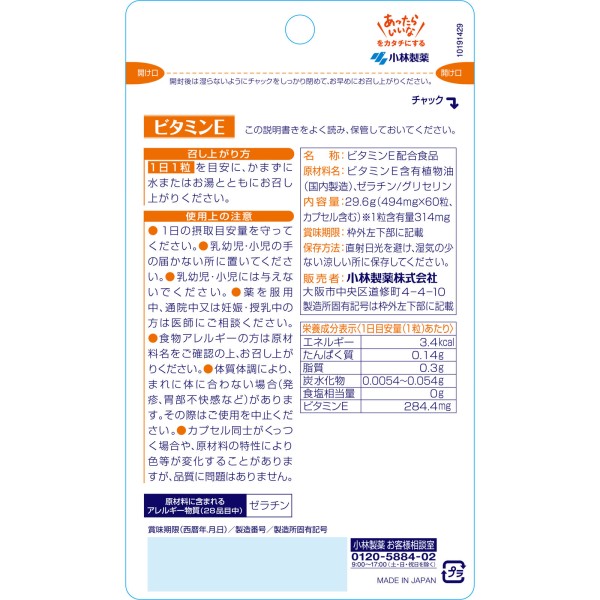 비타민E 60일분 60정 고바야시제약 > 비타민E제