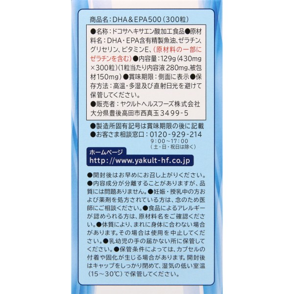 DHA&EPA500 300정 야쿠르트헬스푸드 > 기타